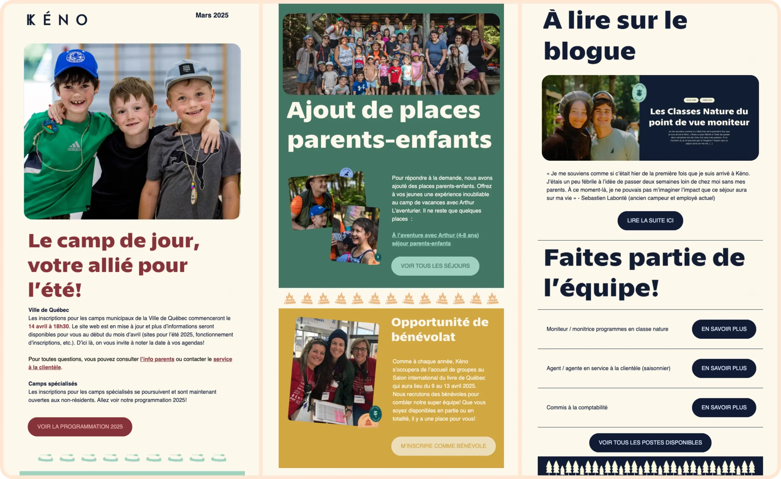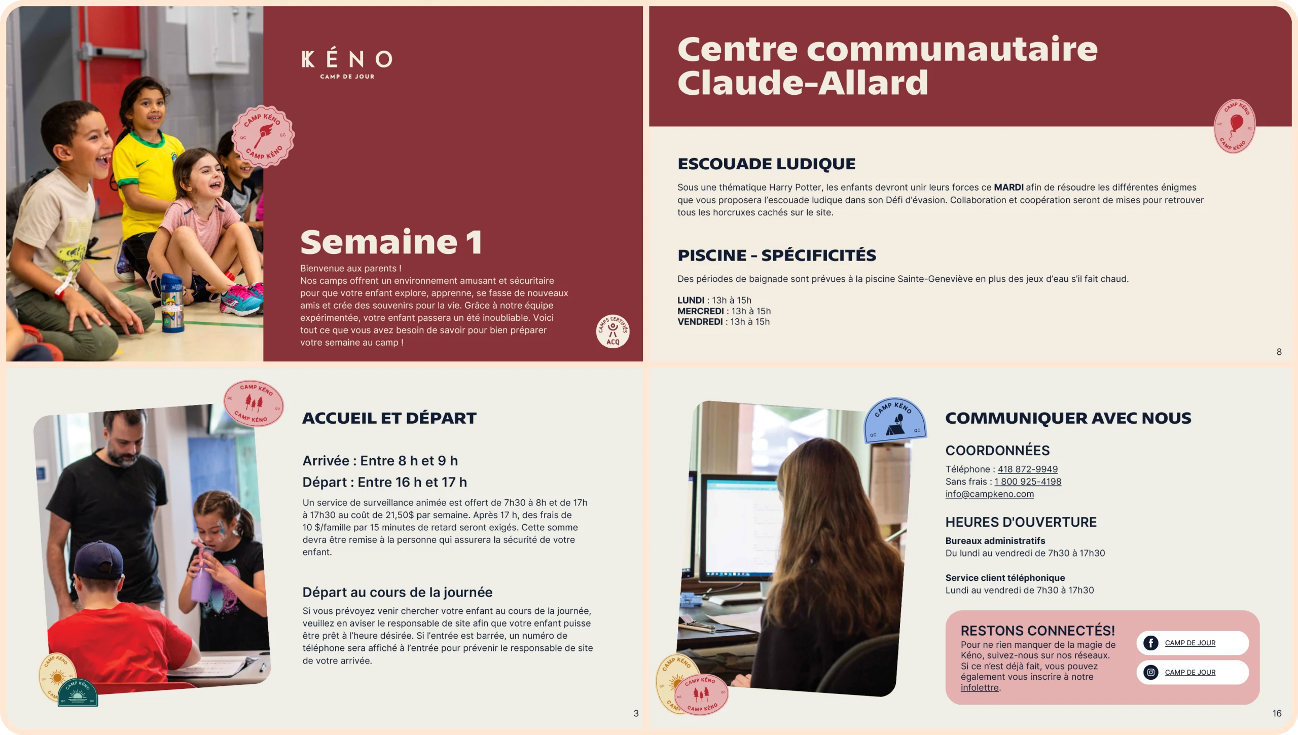 Une application rigoureuse et cohérente de l’image de marque sur une grande variété de formats, permettant au Camp Kéno de gagner en lisibilité, tout en conservant une identité humaine. Le travail a facilité la reconnaissance immédiate de la marque et simplifié la communication interne pour les futures campagnes.
